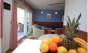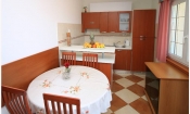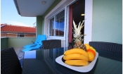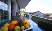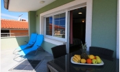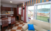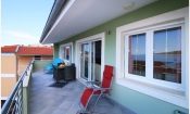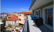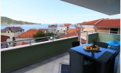 This is a four star apartment situated on the second floor of the house and it occuppies a surface of 70 square meters. It has one bedroom with double bed, a couch (which can be used as additional bed for two people) in the living room, kitchen, bathroom with shower and a terrace (30 m2) with a sea view. On the terrace you have a table with chairs.