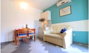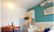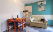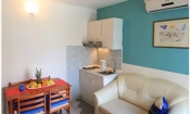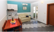This is a three star apartment situated on the second floor and it occupies a surface of 36 square meters. It has one double bed bedroom, living room (with sofa which can be used as additional bed for one person), kitchen, bathroom with shower and a balcony (6 m2) with a partial view to the sea. On the balcony you have a table with two chairs.